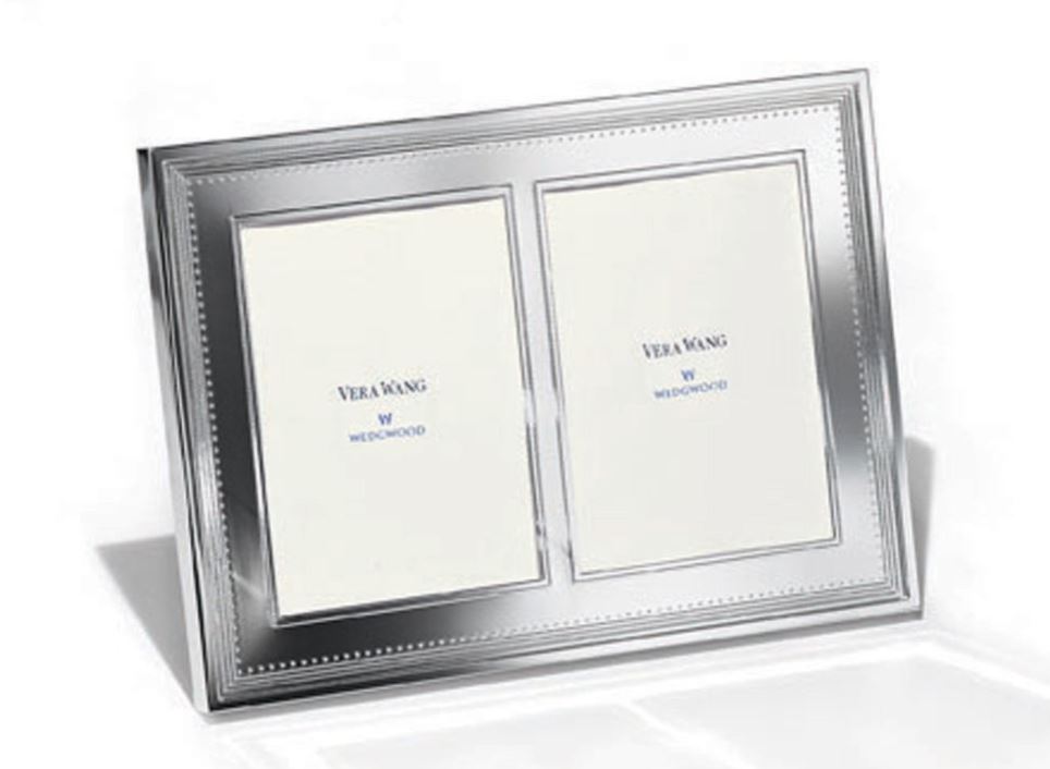 Vera Wang Grosgrain Silver Giftware Double Frame 5"X7" (12.5X18cm)