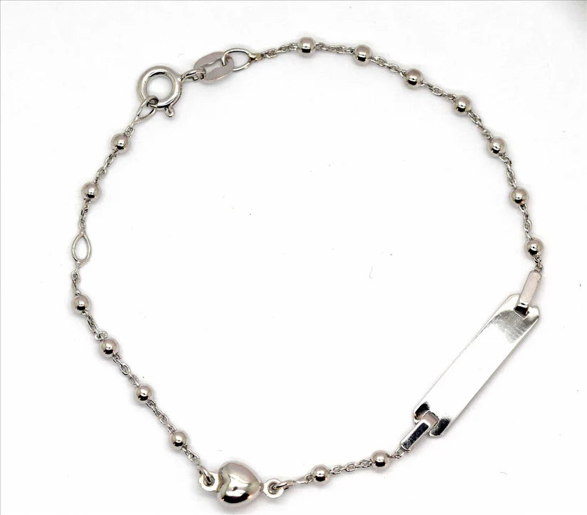 Delicate and full of charm, this 925 sterling silver Italian-made ID bracelet is a sweet and timeless gift for a little one. Designed with elegant 2.6mm ball links, it features a polished ID plate perfect for engraving a name, initials, or special date — creating a truly personal keepsake.