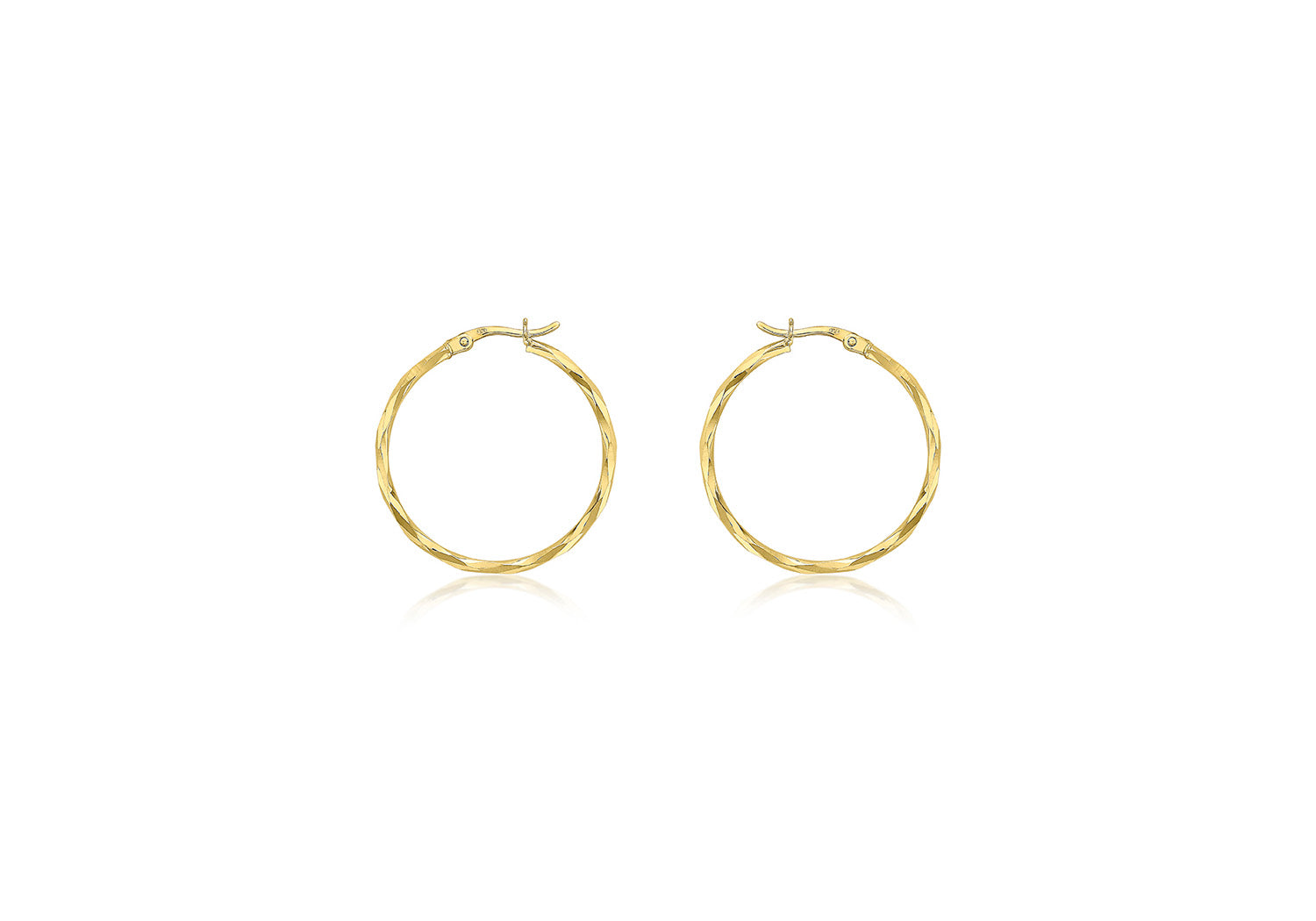9ct Y/G Hollow Diamond Cut Hoop Earrings