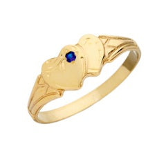 9ct Yellow Gold Double Heart Signet Ring With Blue Spinel