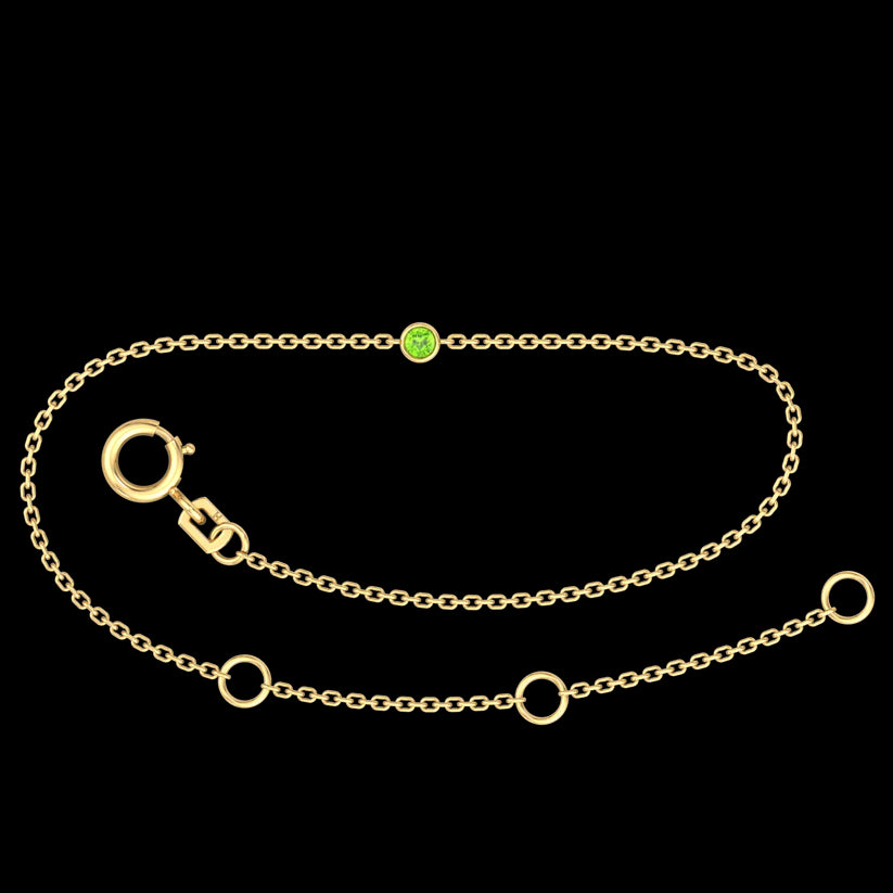 Fresh and vibrant, this elegant bracelet is part of our 9ct Gold Birthstone Collection, thoughtfully crafted to celebrate personal meaning with refined style. Made from solid 9K yellow gold, it features delicate 1.4mm oval links and a bezel-set peridot (1PE = 0.06ct) β the August birthstone, treasured for its bright green hue and associations with positivity and renewal.