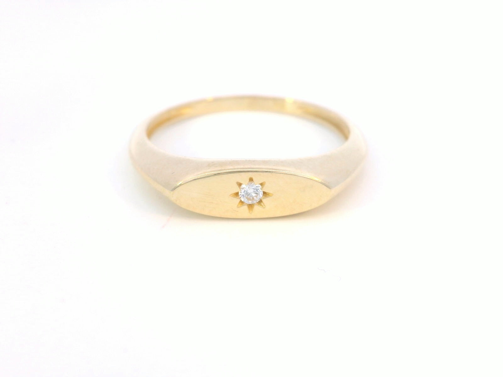 Add a touch of luxury and brilliance to your jewellery wardrobe with this exquisite yellow gold cubic zirconia signet ring.