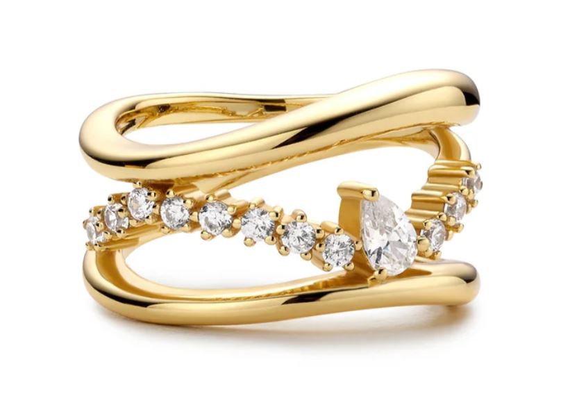 The Ultimate Ring For The Season Ahead. This Chunky, Layered Ring Features A Teardrop-Shaped Design At The Centre And Is Surrounded By A Band Of Cubic Zirconias, The Combination Of Polished Curves And Sparkle Make For A Ring That Will Not Go Unnoticed.