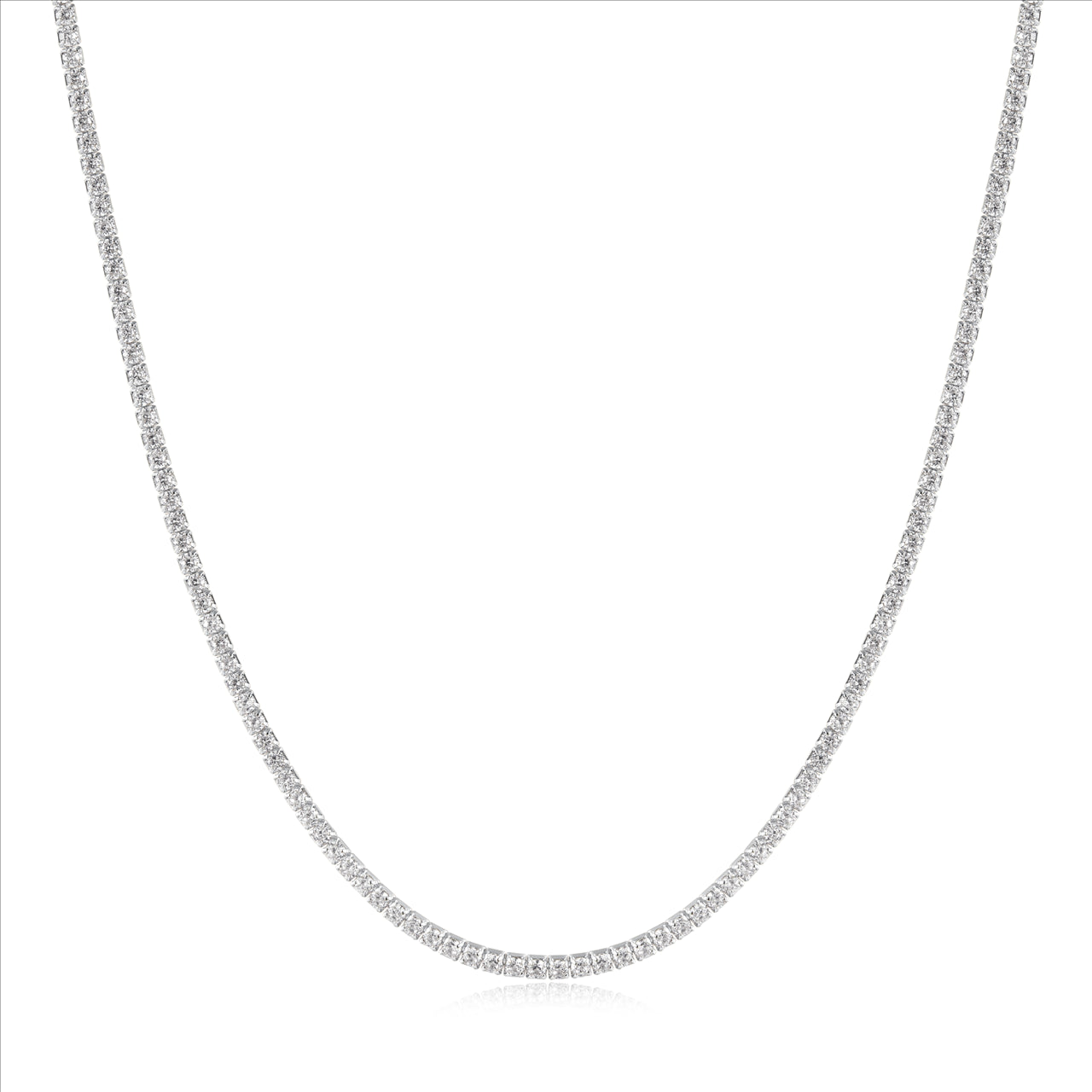 Decorated with a continuous line of cubic zirconia, this sterling silver tennis bracelets can be your sparkling must-have. Statement enough to be worn alone or stack it with other chains for a luxe, modern look.