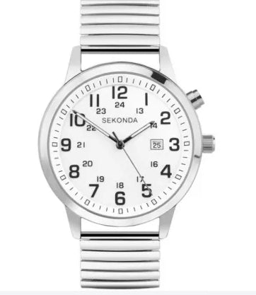 Sekonda SK30126 Easy Reader Men's Watch β Silver-Tone Expandable Bracelet with White Dial