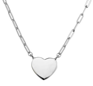 Sterling Silver Paperclip Necklace With Flat Heart Pendant