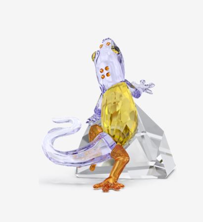 Emerging from the shade and climbing onto a rock to bask in the sun, this inquisitive gecko reveals his glorious colours to the world. The design is crafted with 437 facets and 6 individual crystals, and showcases a variety of warm tones including yellow, orange and lavender. Place it anywhere in your home as a centrepiece of joy. Decoration object. Not a toy. Not suitable for children under 15.