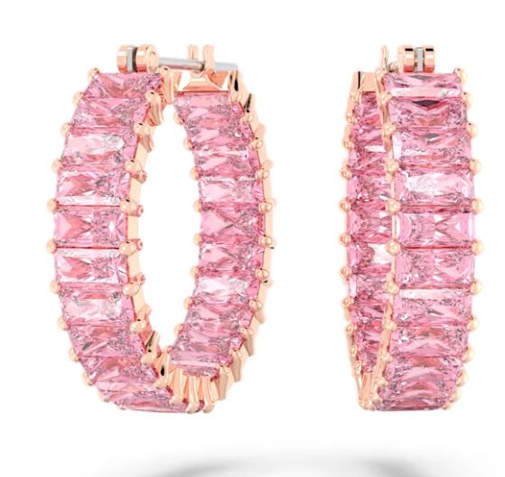 Give your casual styling an instant boost with these luscious hoop earrings from the Matrix family. The attractive colorway is uniquely eye-catching, thanks to the pairing of rose gold-tone plating and pink stones. Glittering and golden, these earrings are best worn with matching necklaces or bracelets - or give them as a charming gift.