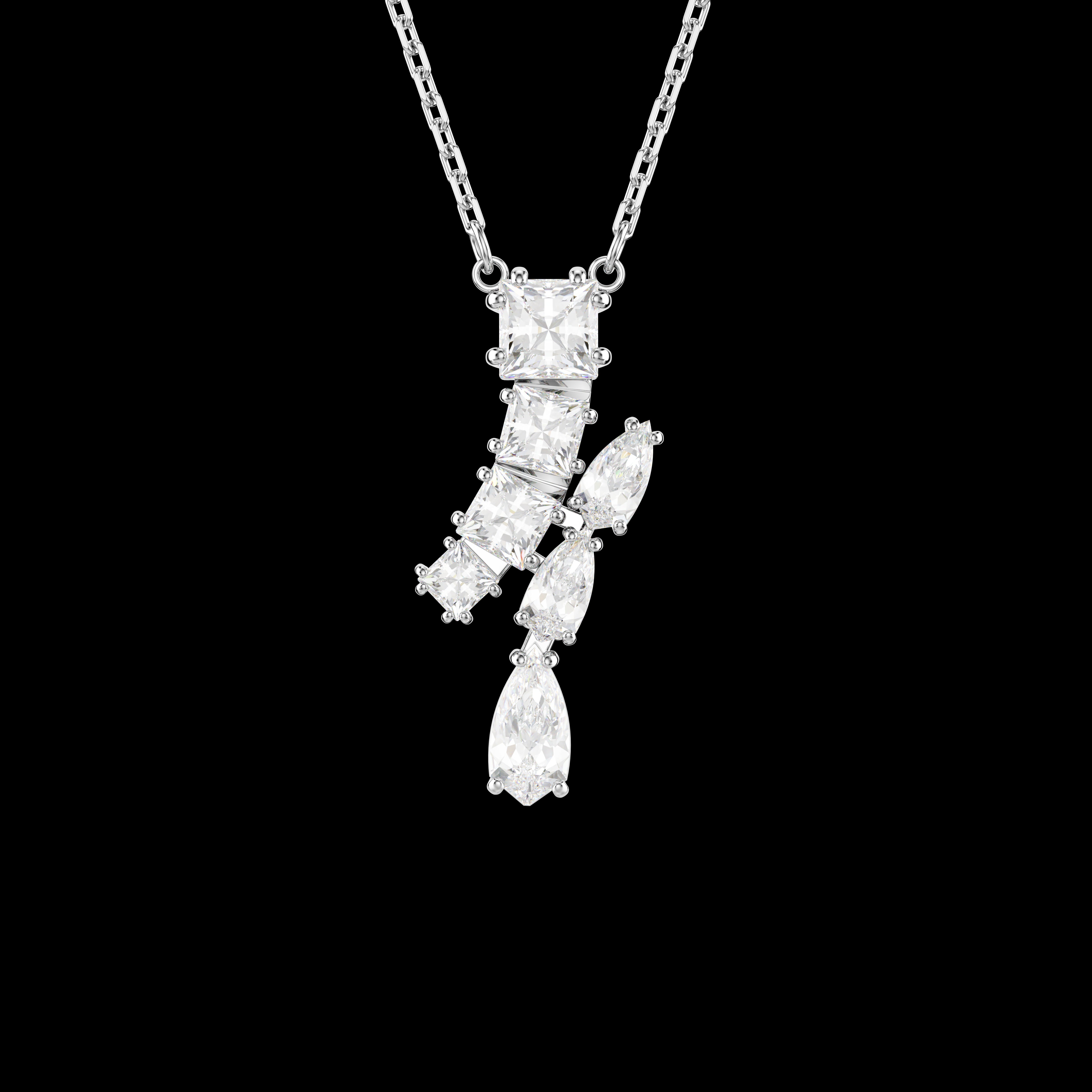 This exquisite Matrix pendant is a stunning example of Swarovski’s mastery of cut. Suspended from an elegant chain with a lobster closure, the rhodium plated jewellery is precisely arranged with an array of prong-set Swarovski Zirconia in different shapes. Pair with a set of matching earrings to create a light-filled look.
