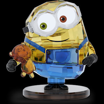 Dedicating their lives to the world’s most villainous boss, the mischievous yellow Minions always find themselves on a comical adventure. This tribute to Bob captures his innocent and childlike spirit, with 366 precision-cut facets and a variety of bright colours. Eye-catching details include his beloved teddy bear, Tim, along with his chrome plated goggles with black artificial leather. Gift this Bob figurine to an avid movie fan, or collect Swarovski’s entire Minion set. Decoration object. Not a toy. Not suitable for children under 15.