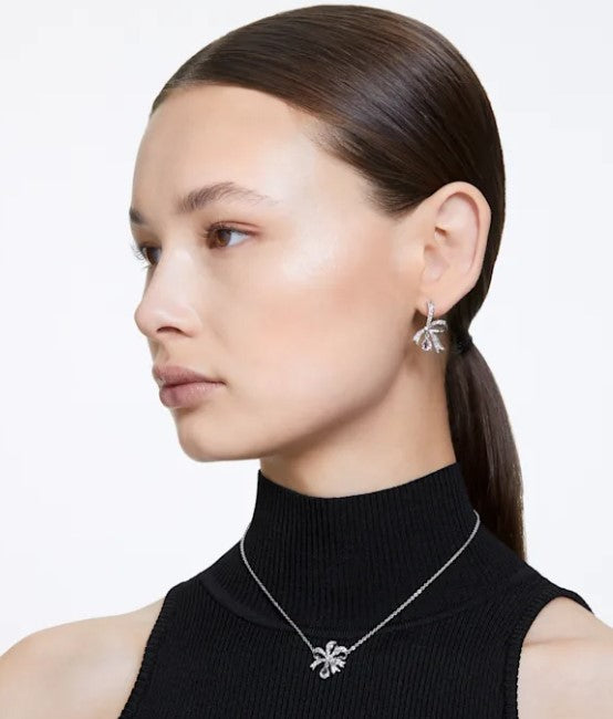 This graceful Volta jewelry set is the perfect way to streamline your style with elegance and sophistication. Including a rhodium plated necklace and pierced earrings, each bow-inspired piece features a radiant selection of clear crystals set in place using the chattonage technique. The tied-up ribbon design makes it a perfect gift for any special occasion.