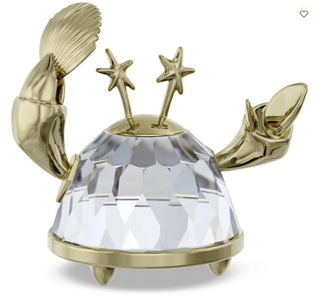 Taking notes from the cosmos, this characterful Cancer figurine is a wondrous tribute to the zodiac. The astrological design combines precision cutting with engraved gold-tone metal, featuring 72 facets that represent a crab holding a scallop shell. Gift this special piece to yourself or someone who is celebrating their birthday. Decoration object. Not a toy. Not suitable for children under 15.