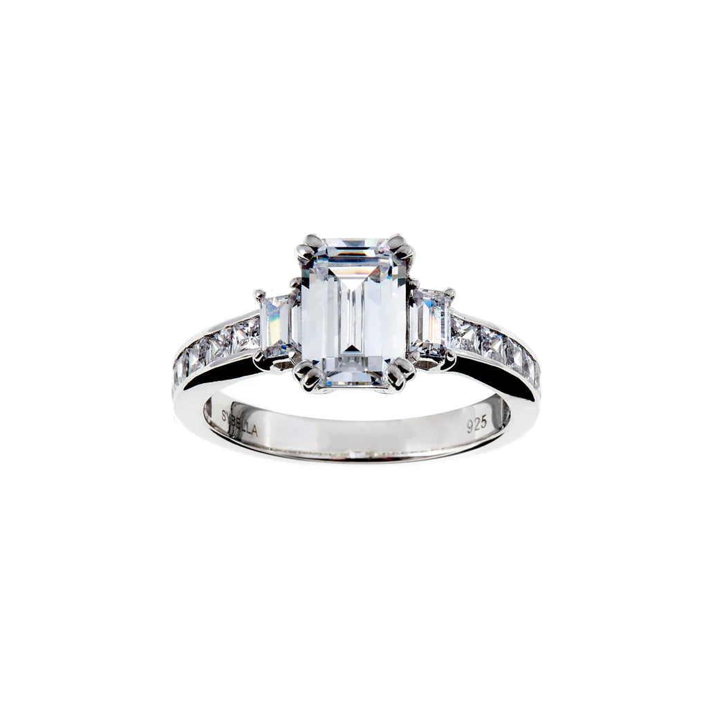 Sybella Lilly Rhodium Cubic Zirconium Baguette Ring Size 7