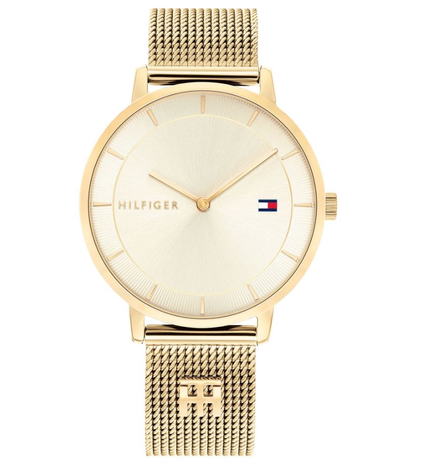 Elegant and precise, this quartz-powered timepiece features a 35mm ionic case with a 6.2mm thickness for a slim, luxurious fit. The champagne-coloured dial is protected by a strong mineral crystal, while the 16mm gold-plated steel strap is secured with a sliding buckle. The watch is water resistant up to 3ATM.