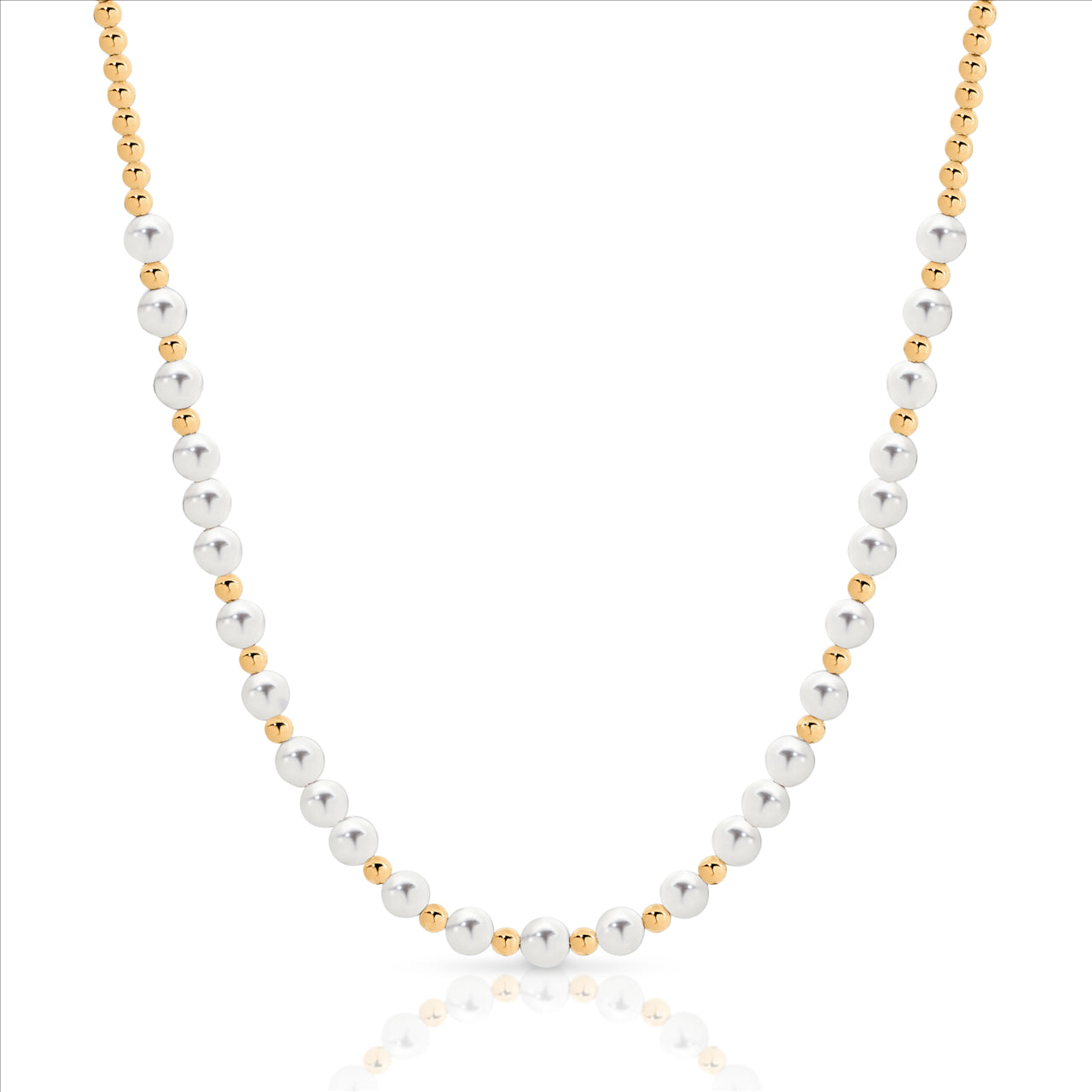 18ct Yellow Gold Plated Bead and Synthetic Pearl Necklace