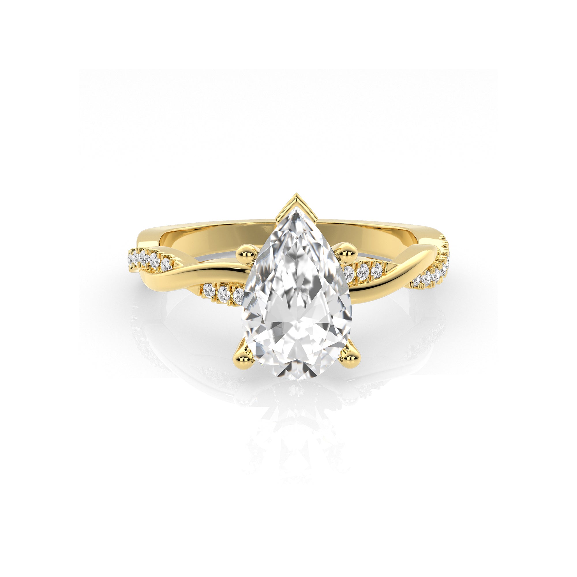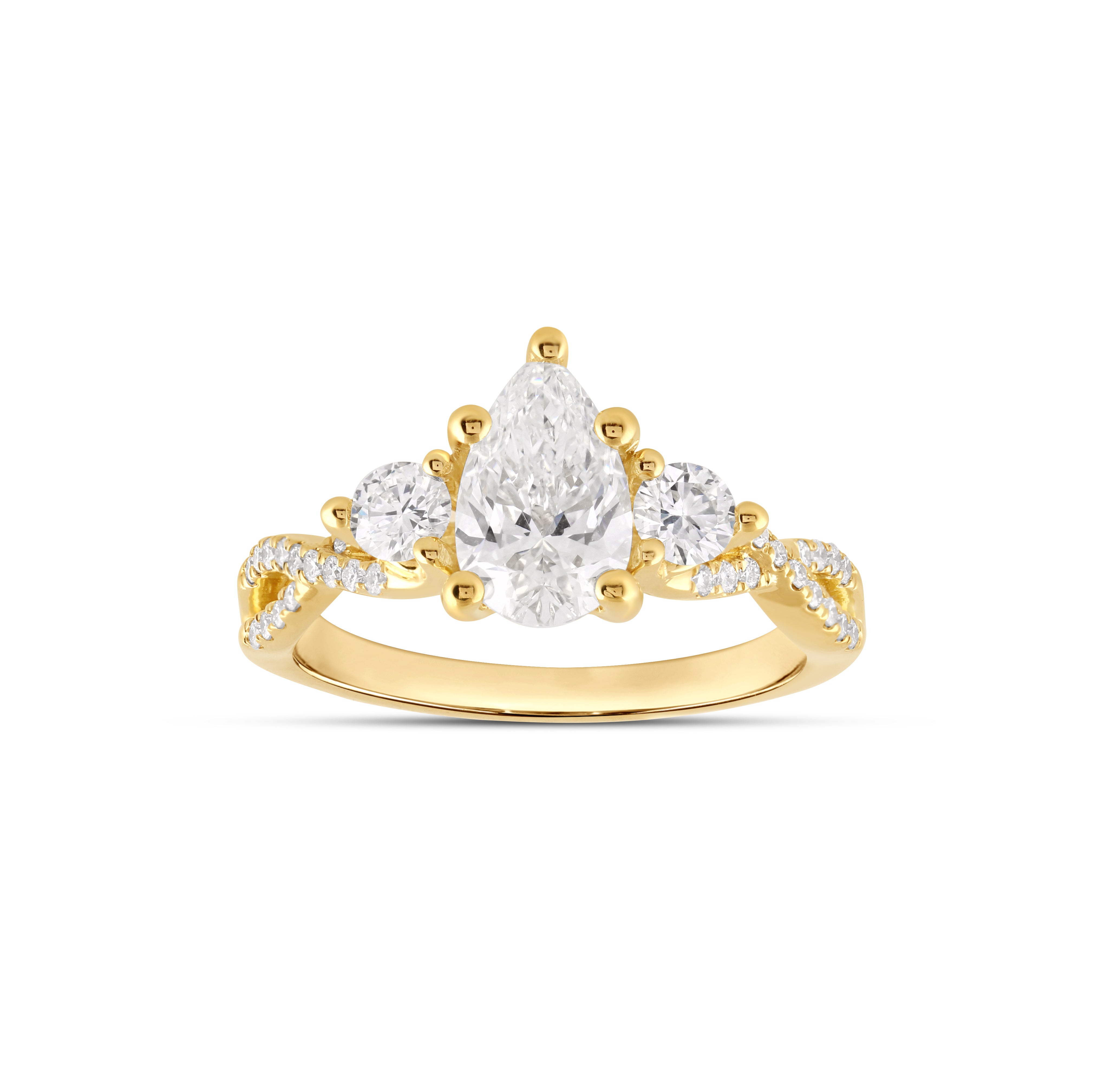 9K Yellow Gold Lab-Grown Diamond Pear Centre Ring with Twisted Band β 1.105ct E/F VS