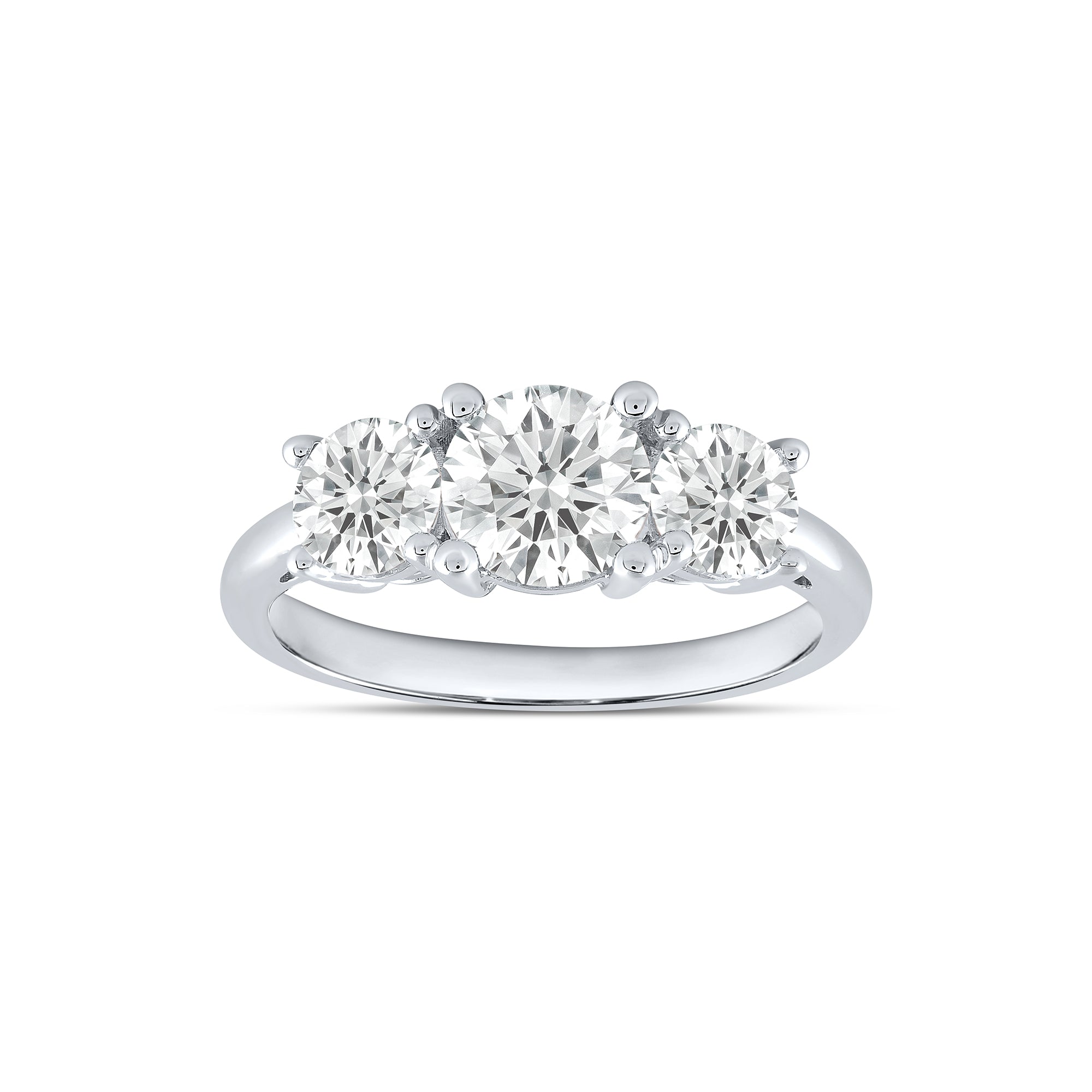 9K White Gold Lab-Grown Diamond Trilogy Ring β 2.025ct E/F VS Round Brilliant Elegance
