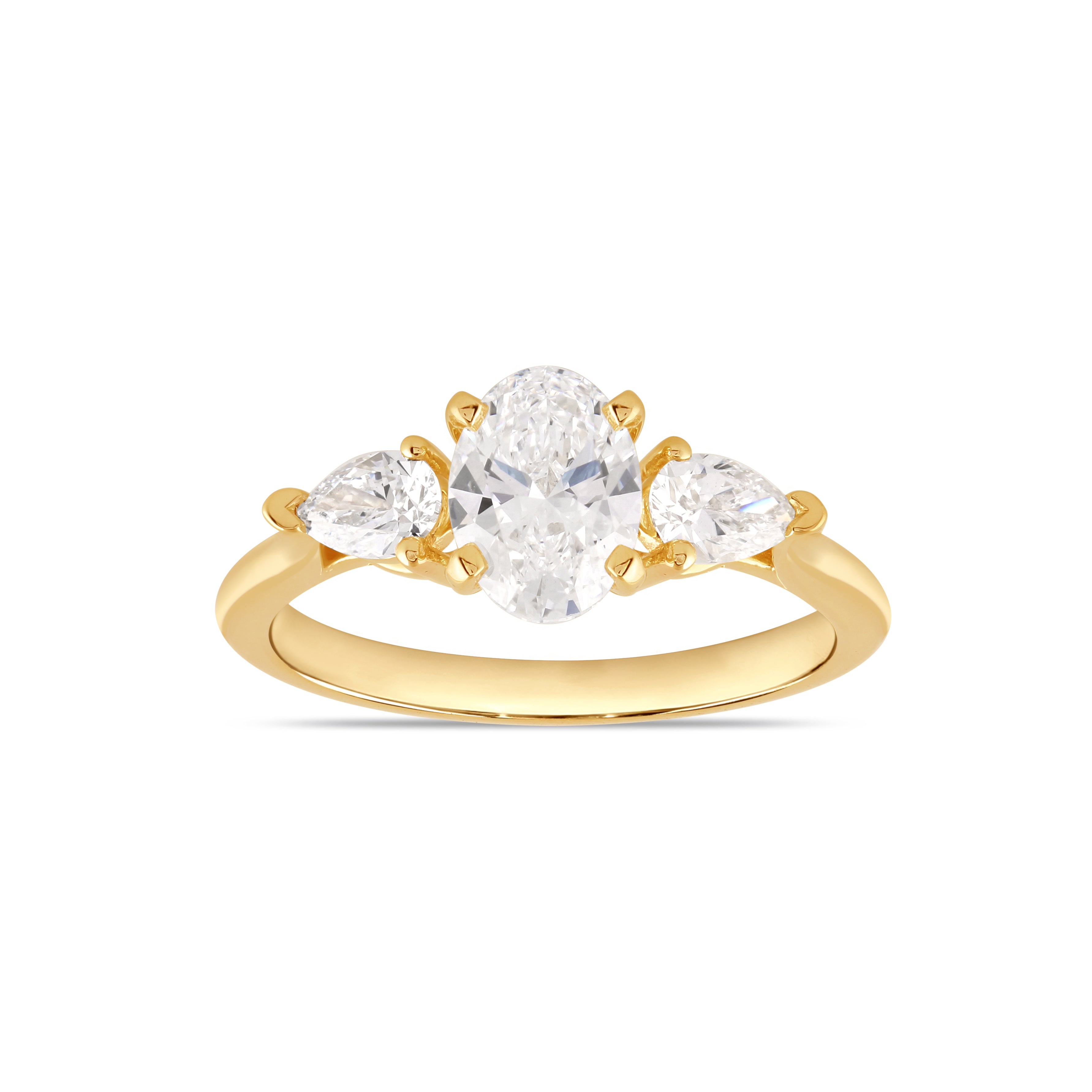 9K Yellow Gold Lab-Grown Diamond Oval Centre with Pear Side Stones Ring β 1.465ct E/F VS