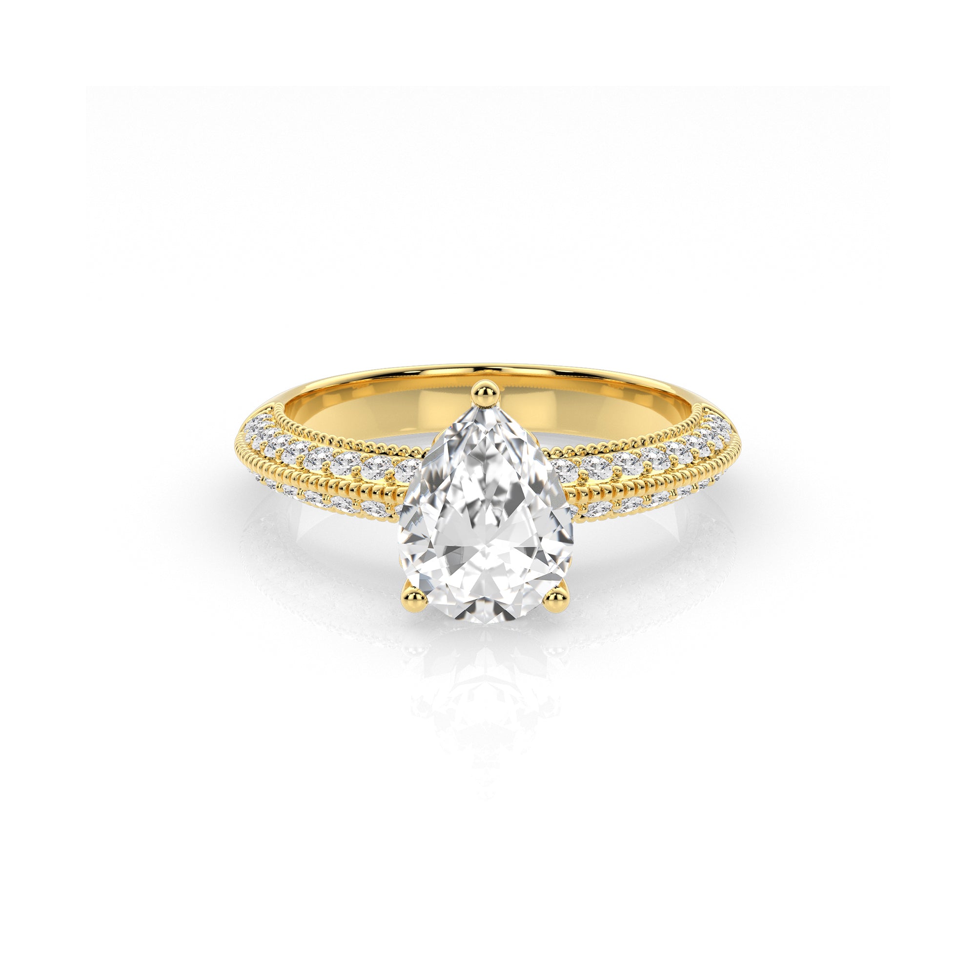 9K Yellow Gold Lab-Grown Diamond Pear Centre Ring with Round Brilliant Cut PavΓ© Band