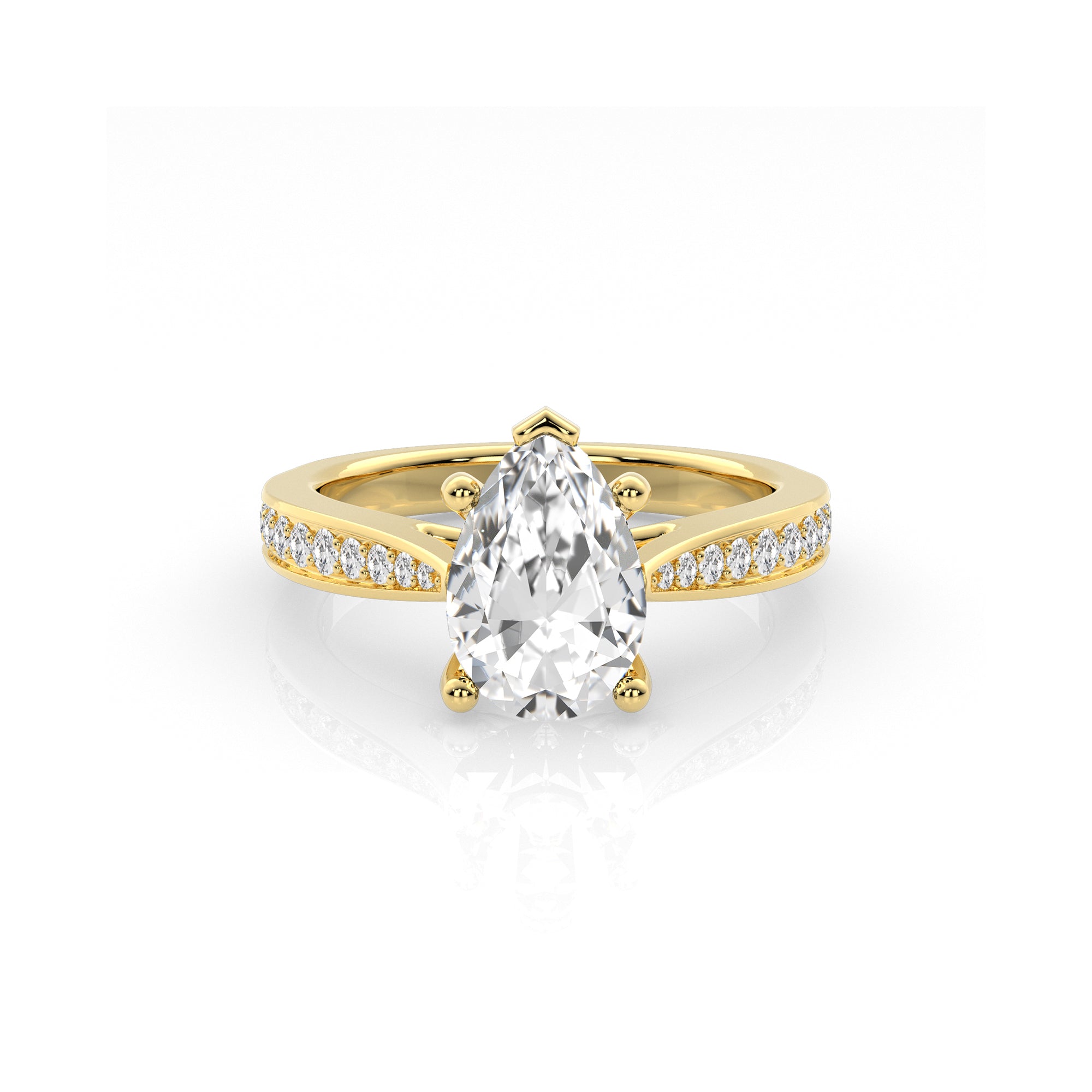 9K Yellow Gold Lab-Grown Diamond Pear Centre Ring with Round Brilliant Cut Band β 1.775ct E/F VS