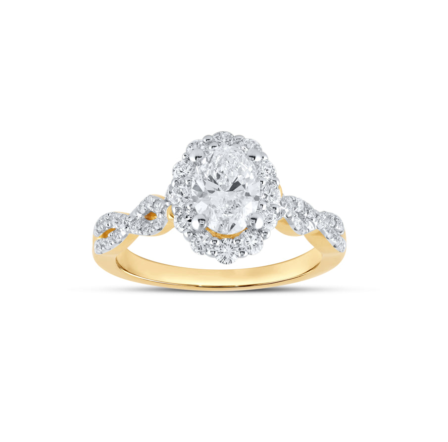 9K Yellow Gold Lab-Grown Diamond Oval Centre Ring with Halo β 1.7ct Total E/F VS