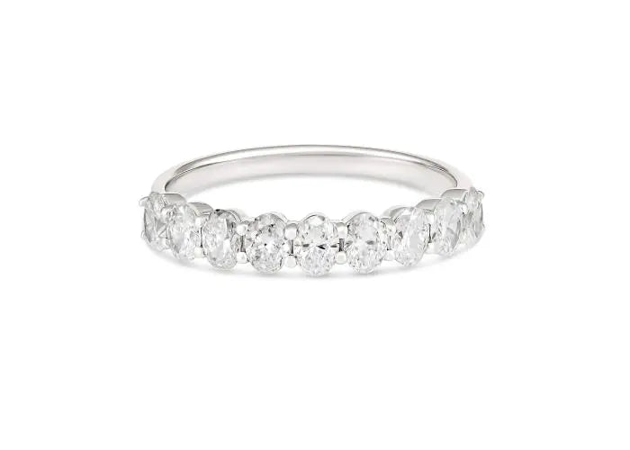 18ct White Gold Claw Set Lab-Grown Diamond Band β 9 Oval Diamonds, 1.00ct Total