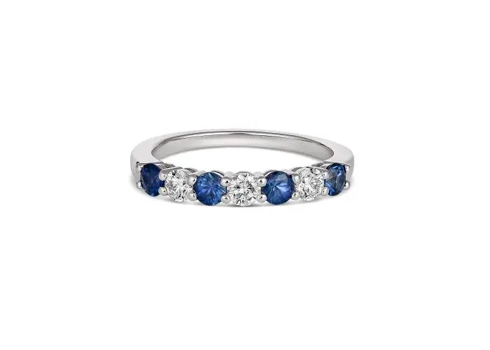 18ct White Gold Claw Set Band β 3 Diamonds (0.30ct) & 4 Sapphires (0.50ct)