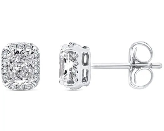 9ct White Gold 1.12ct F VS Lab-Grown Diamond Radiant Halo Stud Earrings β IGI Certified