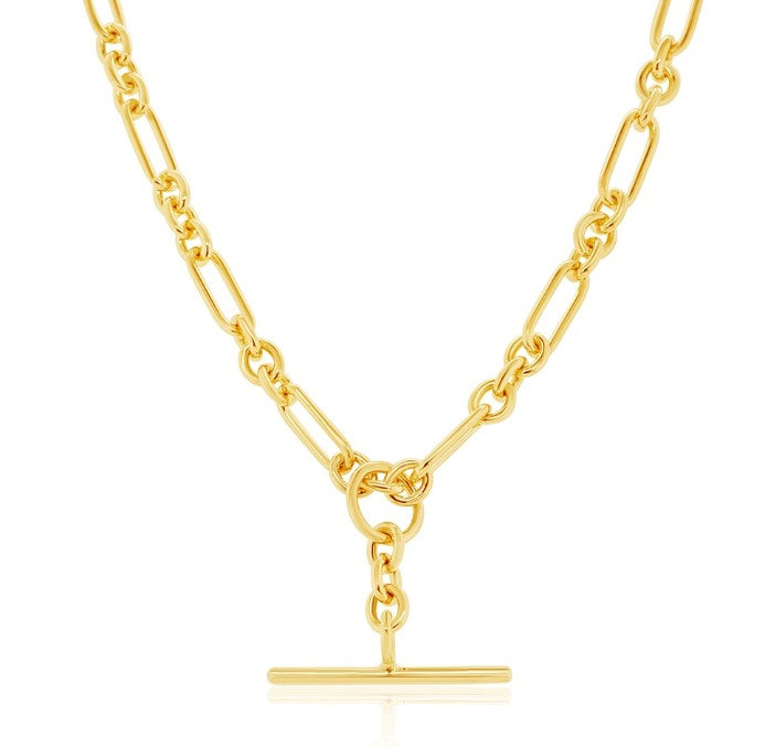 9CT Yellow Gold Silver-Filled Cable 3+1 Chain Necklace β 50cm Handmade 6.0mm Link with T-Bar