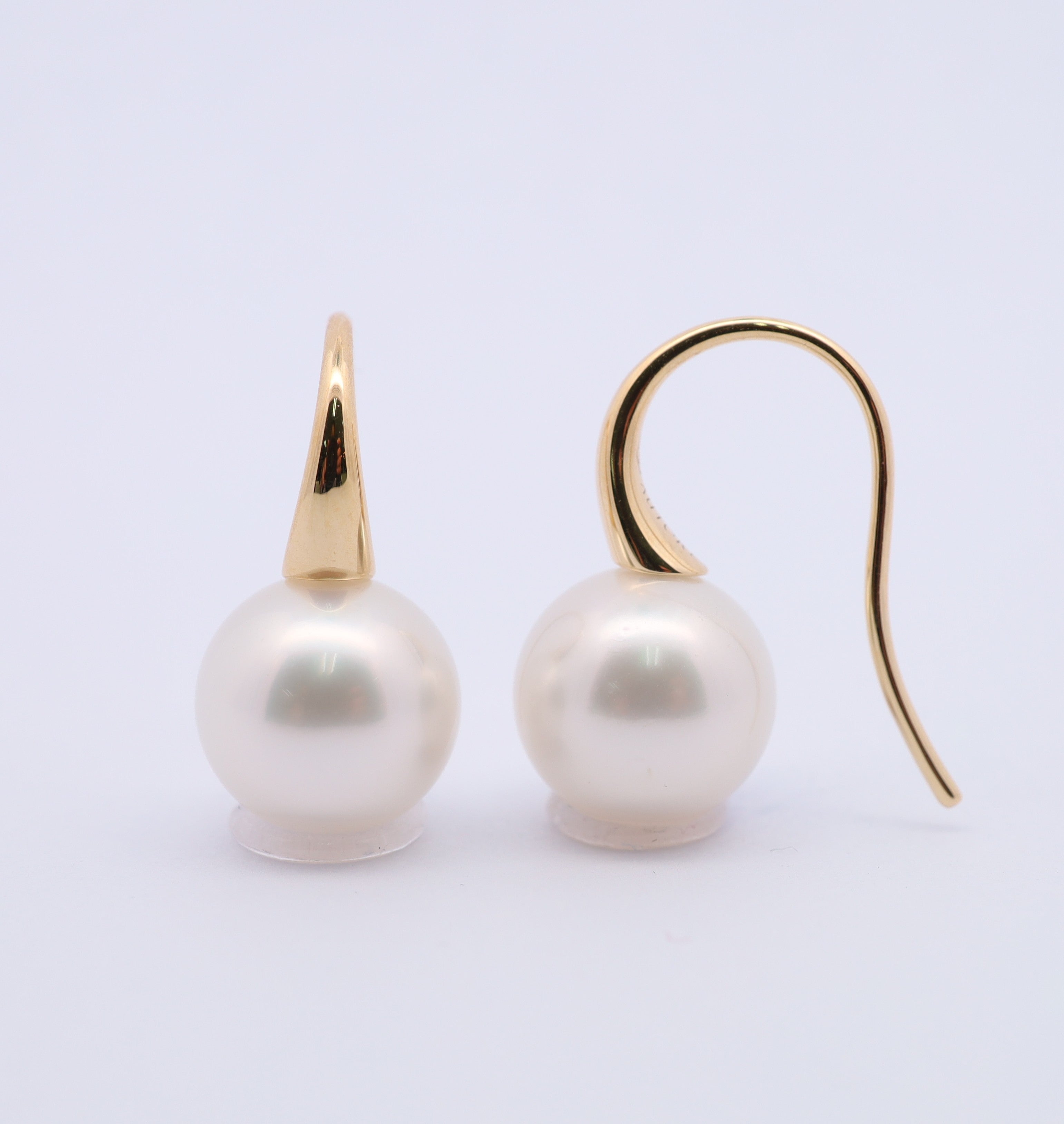 18kt Autore South Sea Pearl 10mm Round White Earrings β Shepherd Hook Findings
