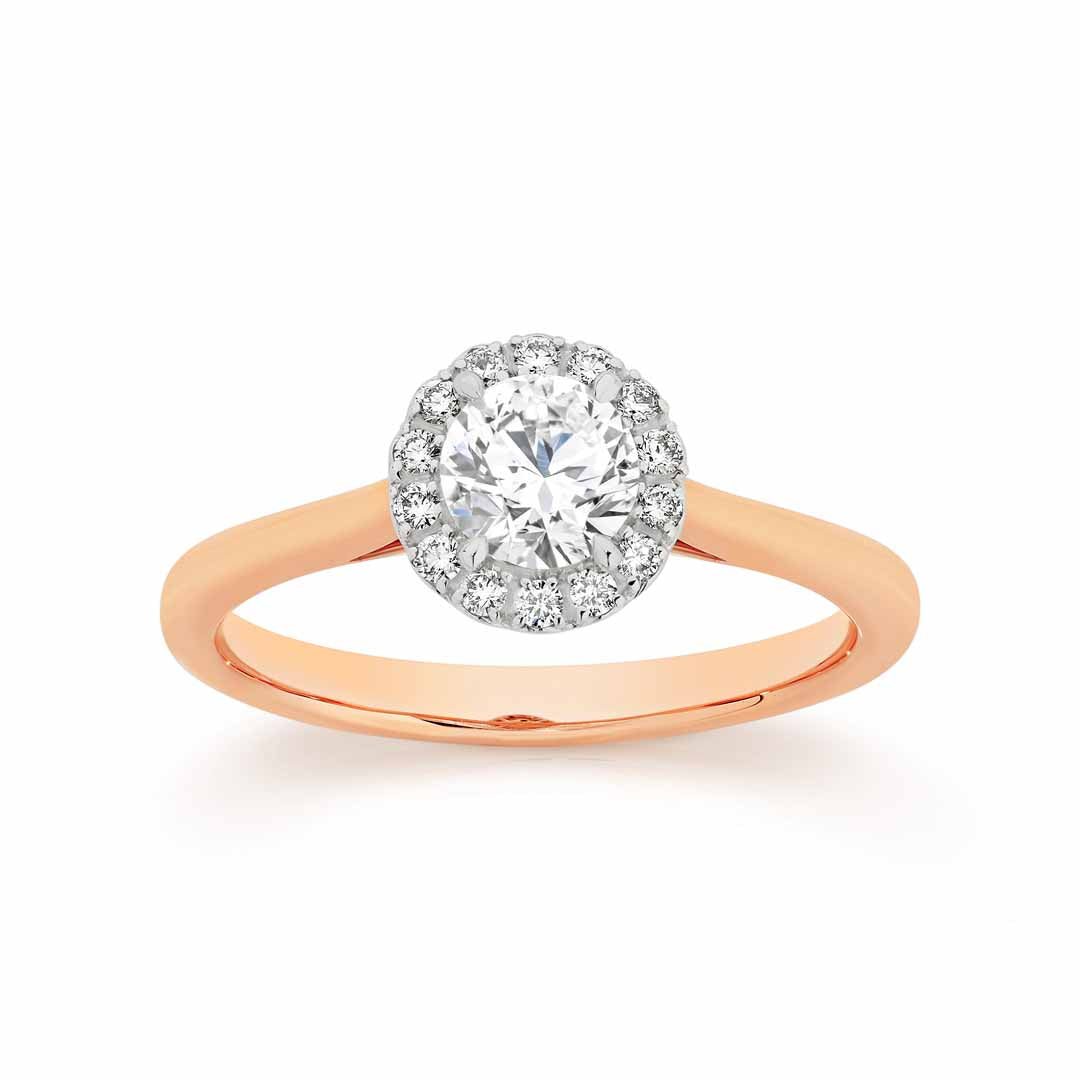 18ct Rose Gold 0.70ct Diamond Halo Engagement Ring