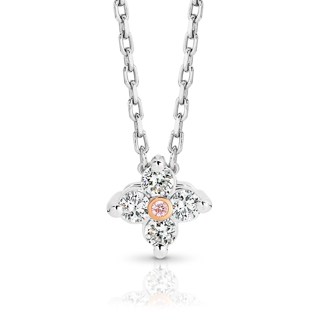 18ct White Gold and Rose Gold Argyle Pink & White Diamond Flower Pendant