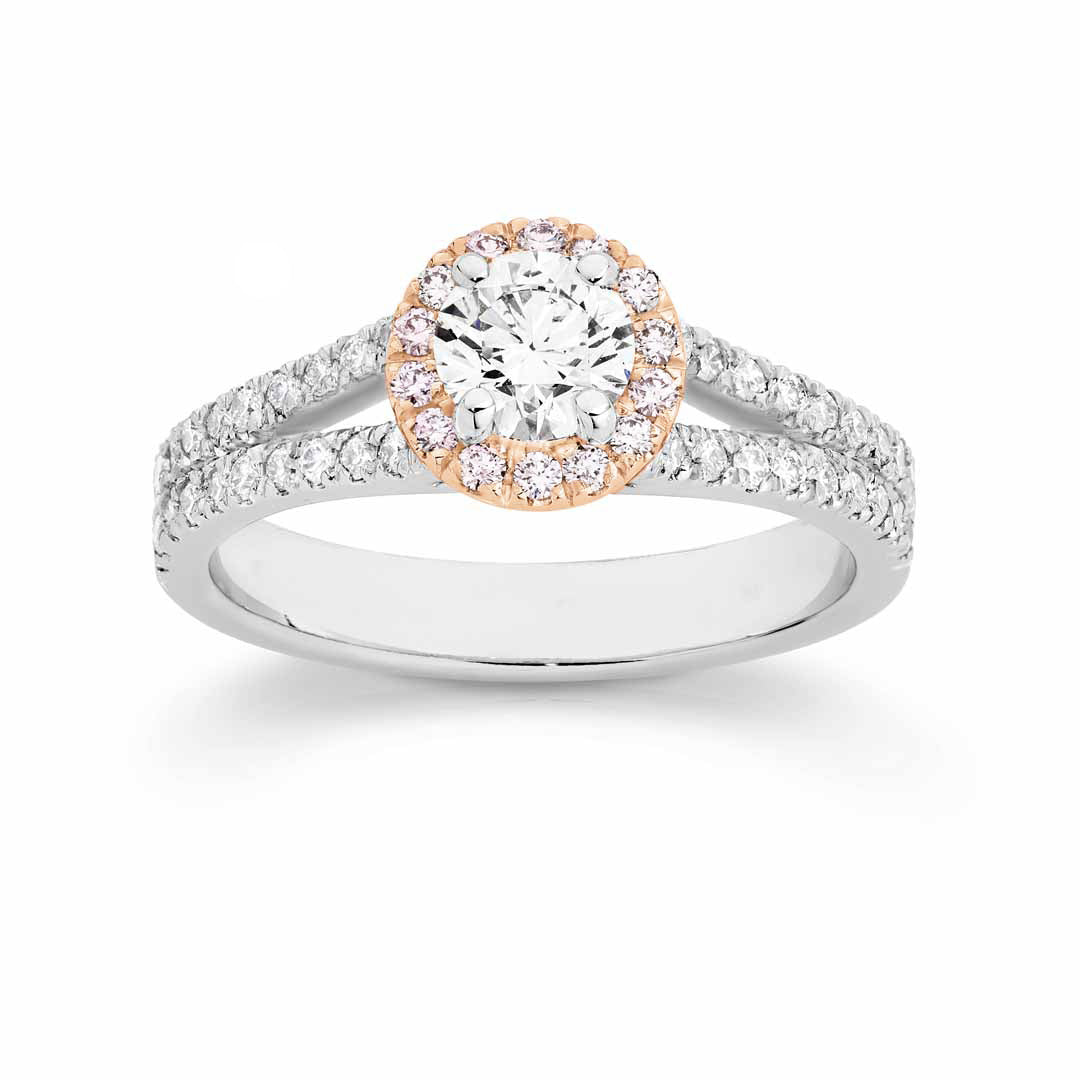 18ct White Gold and Rose Gold  White & Pink Argyle Diam RBC Halo Ring