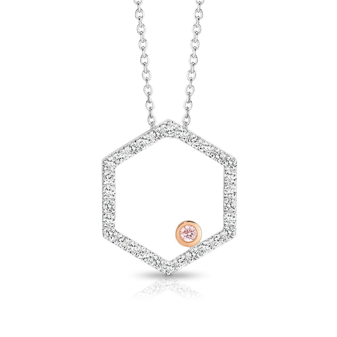 18ct White Gold and Rose Gold White & Pink Argyle Pink Diamond Hexagonal Pendant