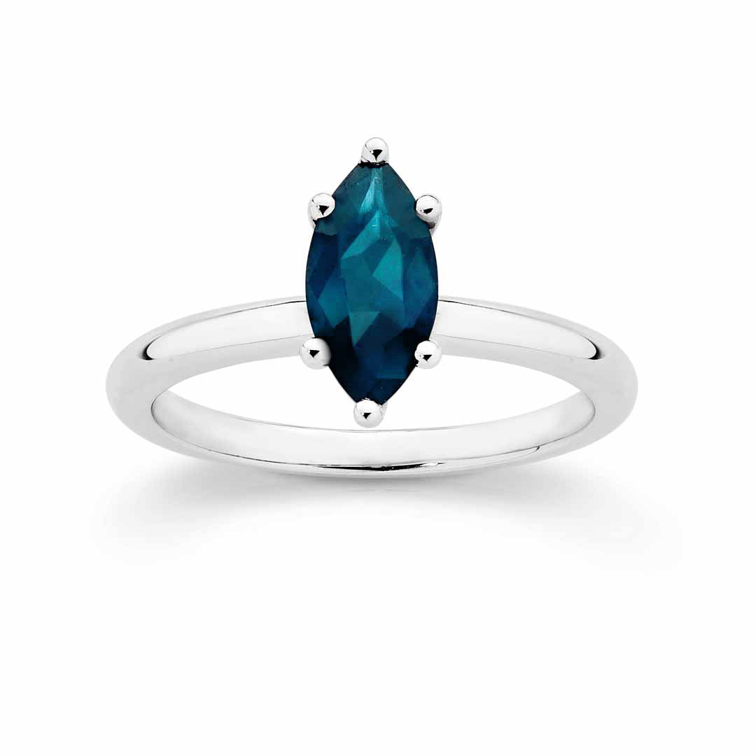 18ct White Gold Australian Sapphire Marquise 6 Claw Ring
