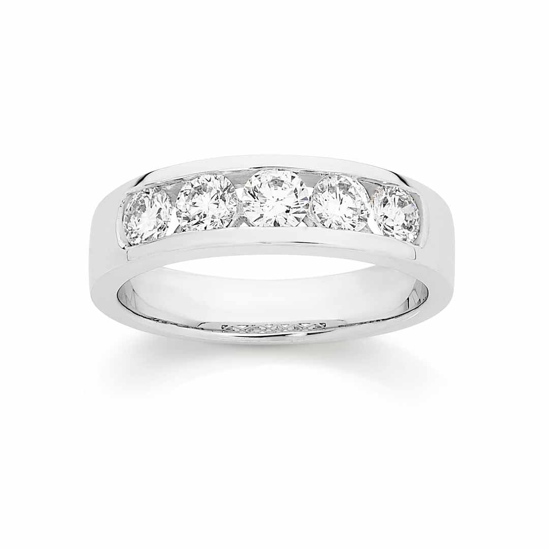 18ct WG Diamond 5 x Round Brilliant Cut Wedding Ring TDW=1.00ct JK/SI-I1