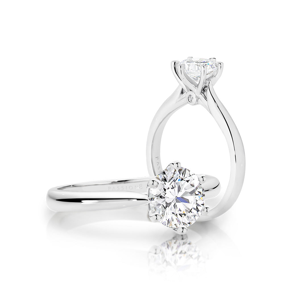 18ct White Gold Passion8 1.00ct 6 Claw Solitaire Ring