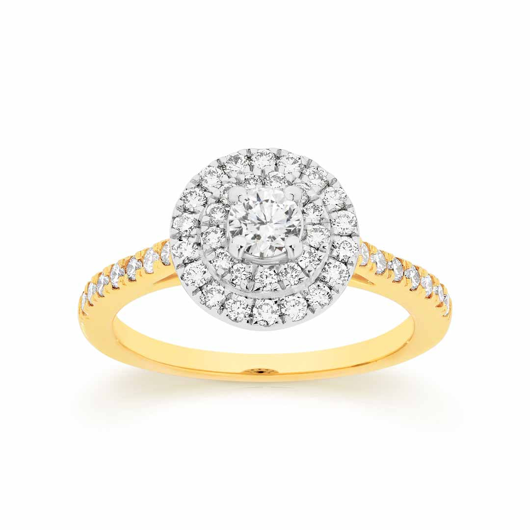 18ct Yellow Gold 0.30ct Diamond Double Halo Engagement Ring