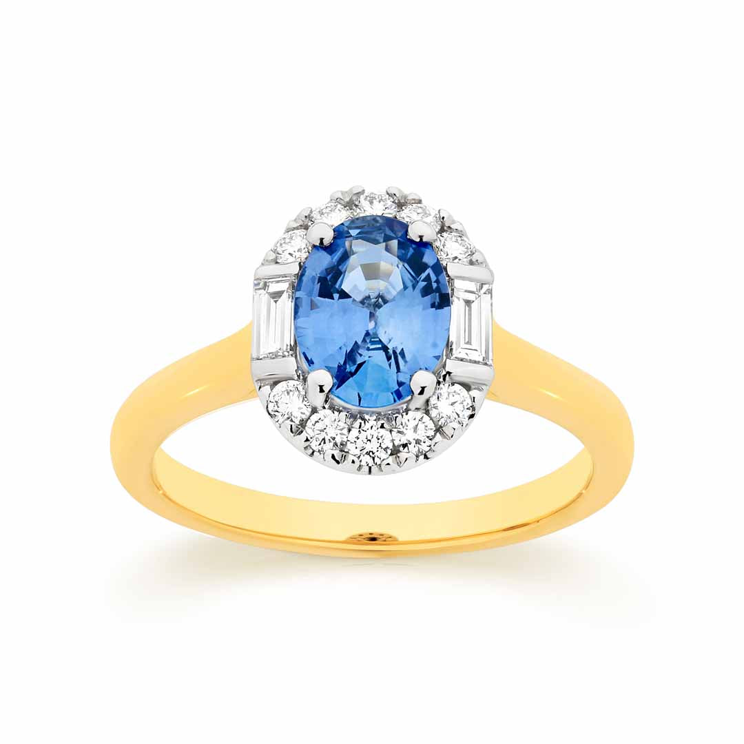 18ct Yellow Gold and White Gold Ceylon Sapphire & Diamond Oval Ring