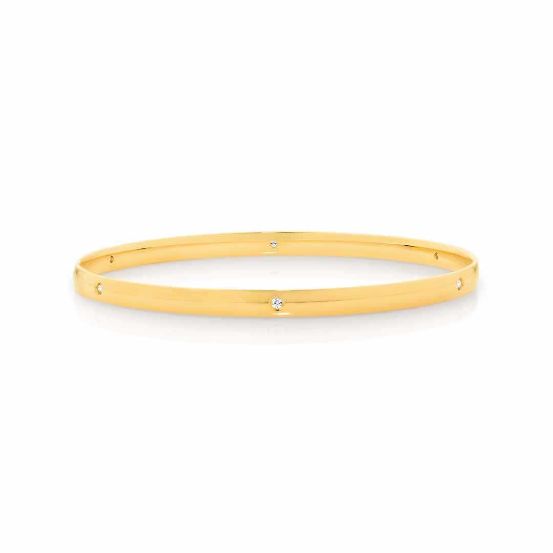 9ct Yellow Gold Diamond Hammer Set 4.4x65mm Bangle