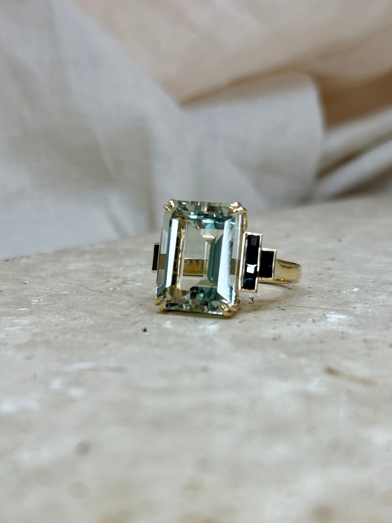 Make a bold and beautiful statement with this Green Amethyst and Sapphire Gold Ring β a must-have for gemstone lovers and fine jewellery collectors.