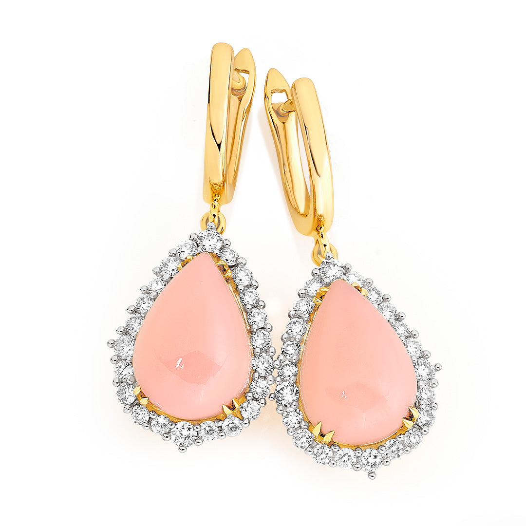 9ct YG Pink Opal & Diamond Pear Halo Drop Earrings TDW=0.75ct GH/SI1-2