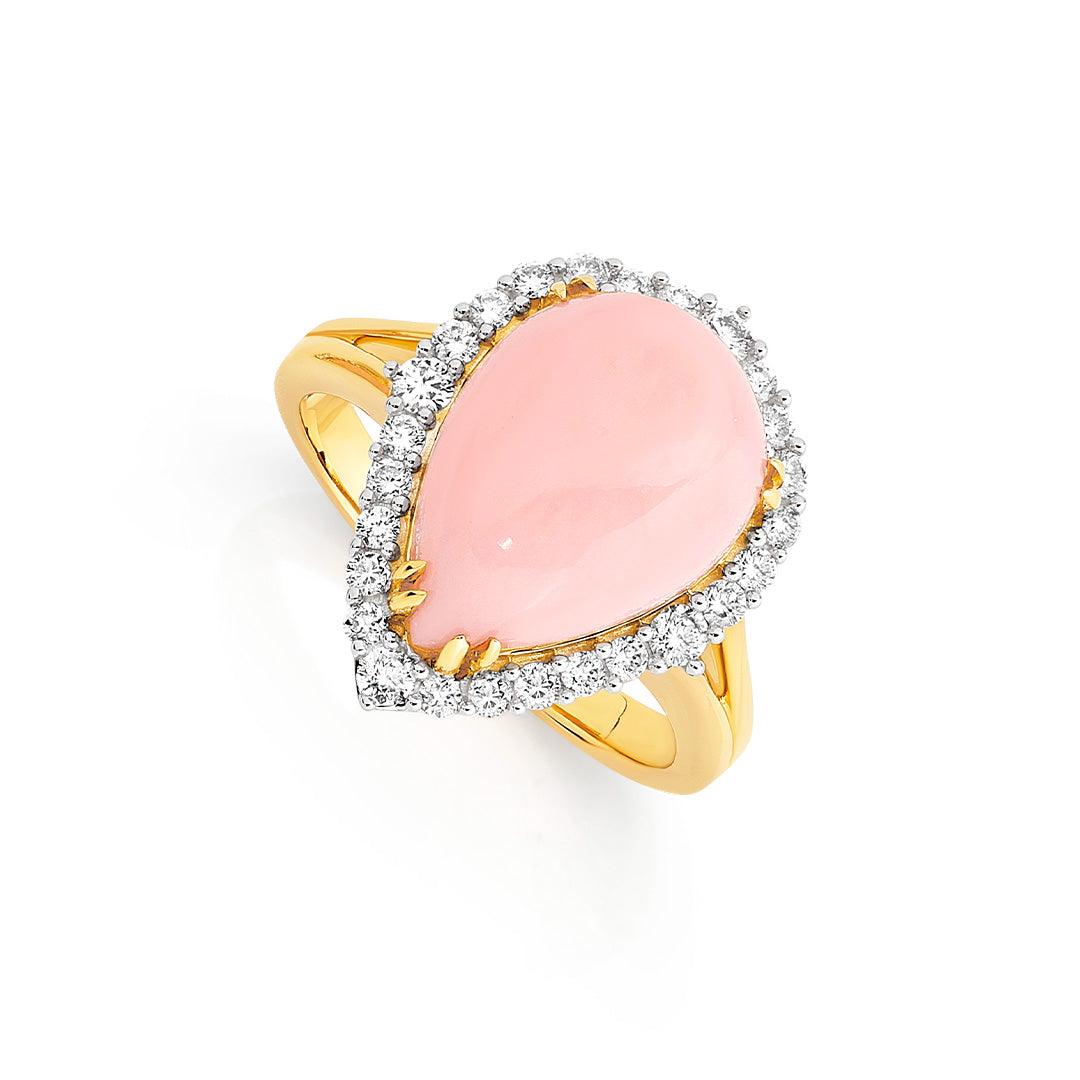 9ct YG Pink Opal & Diamond Pear Halo Split Band Ring TDW=0.45ct GH/SI1-2