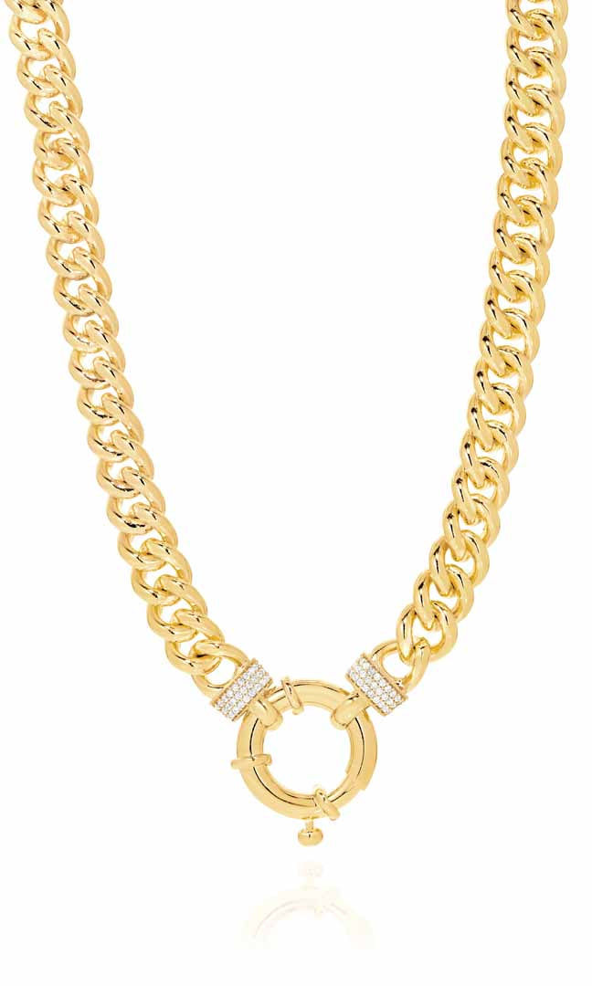 9ct YG Silver Filled 45cm Curb Bolt Ring Chain with CZ KIT#1