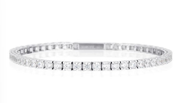The Georgini Gold Moissanite Tennis Bracelet in 9ct White Gold Features 5 TCW of Sparkling Moissannites.