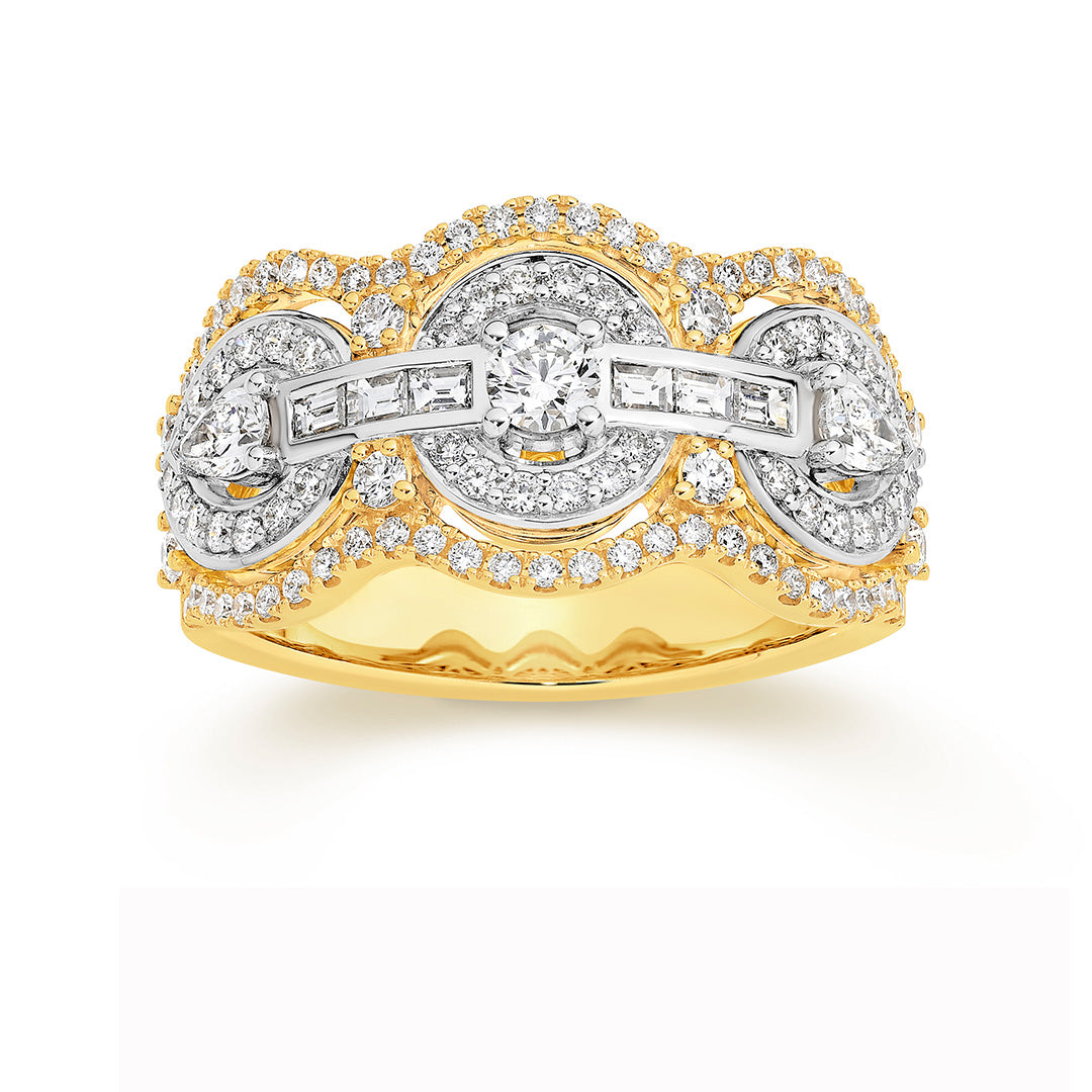LILA Limited Edition 2023 18ct YG/WG Round & Baguette Diamond Ring. TDW=1.25ct H/SI & G/VS