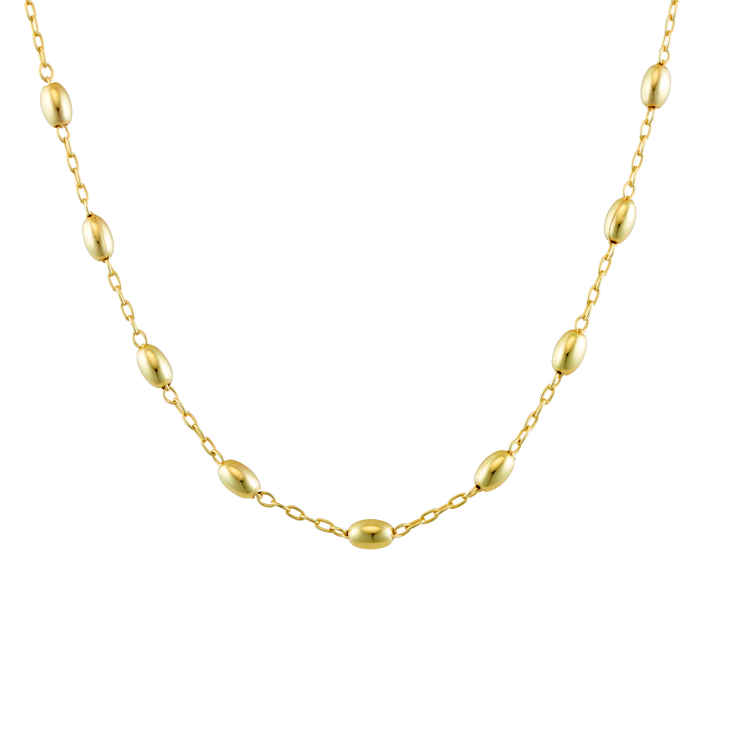 Sterling Silver Gold Colour Oval Bead Chain Necklace