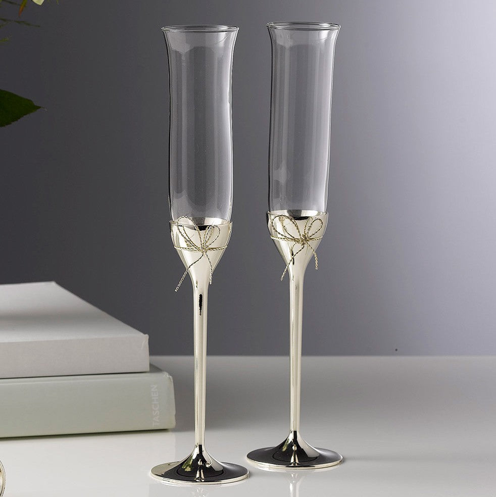 Vera Wang Wedgwood Love Knots Silver Giftware Toasting Flute Pair