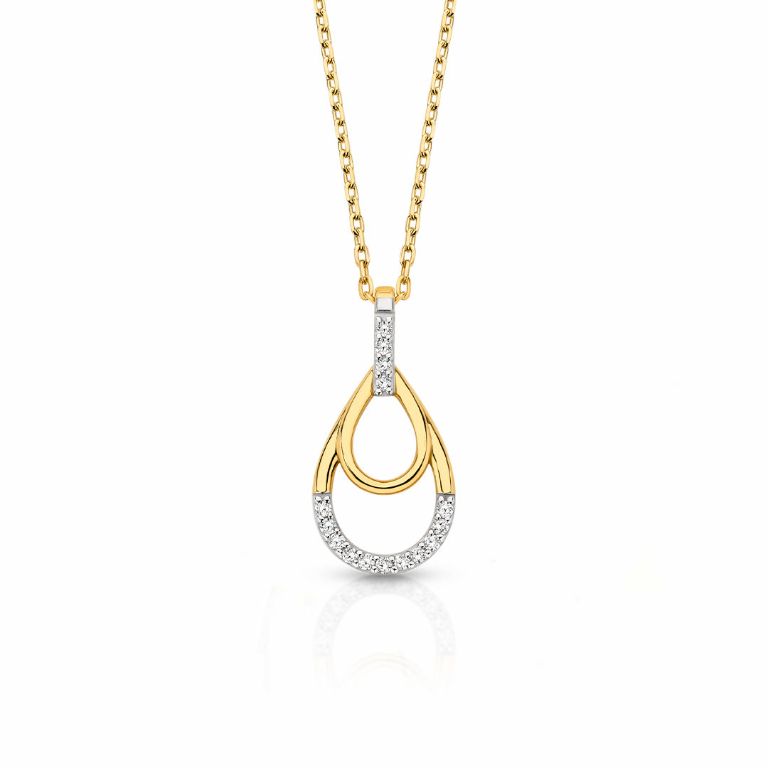 9ct Yellow Gold Double Pear Diamond Necklace – 45cm – Pavé Set – 0.045ct TDW