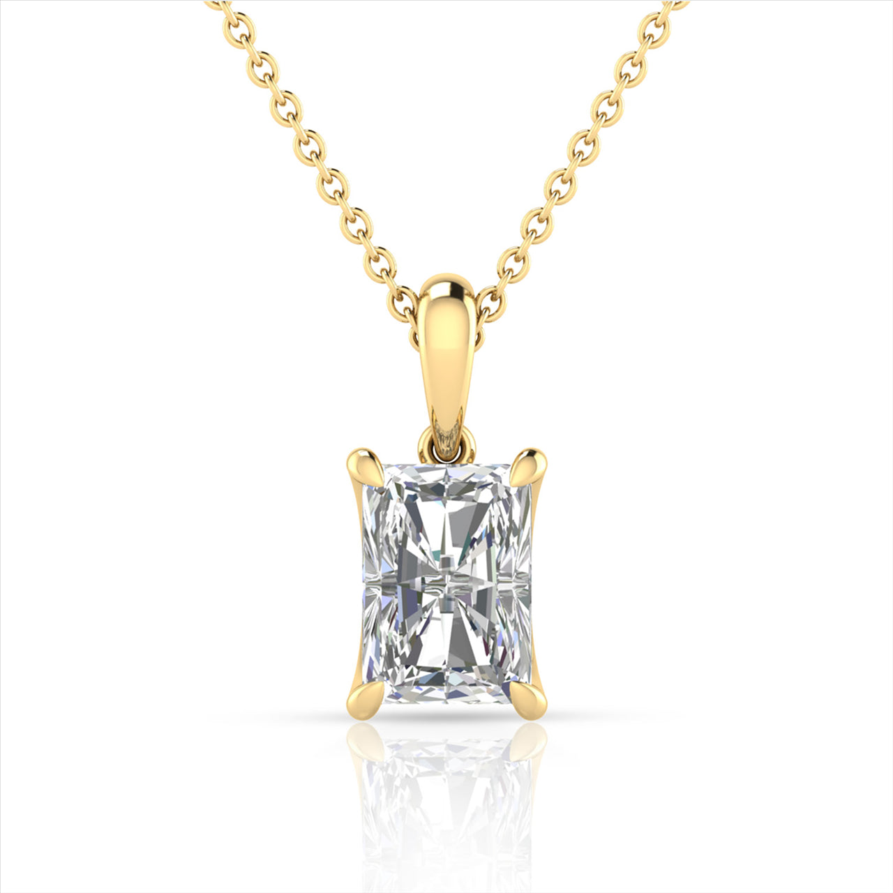 9Ct Yellow Gold 0.15Ptemerald Cut Lab Grown Diamond Bezel Set Pendant With Chain